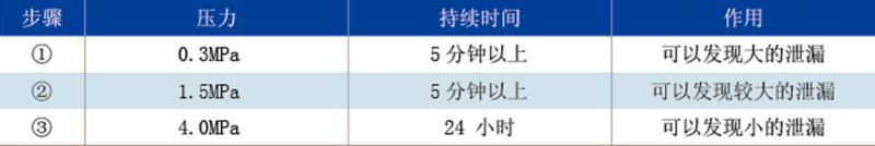 d.若保壓不合格,必須查到漏點并解決,然后再重新進行氣密性試驗,直至合格。